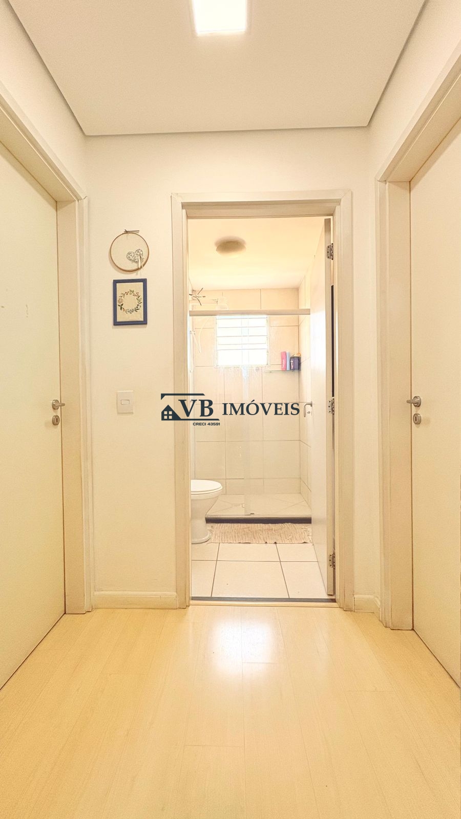 Possui dois quartos, sendo um deles com armario planejado, piso em laminado, painel de madeira na sala e cortinas sob medida.
